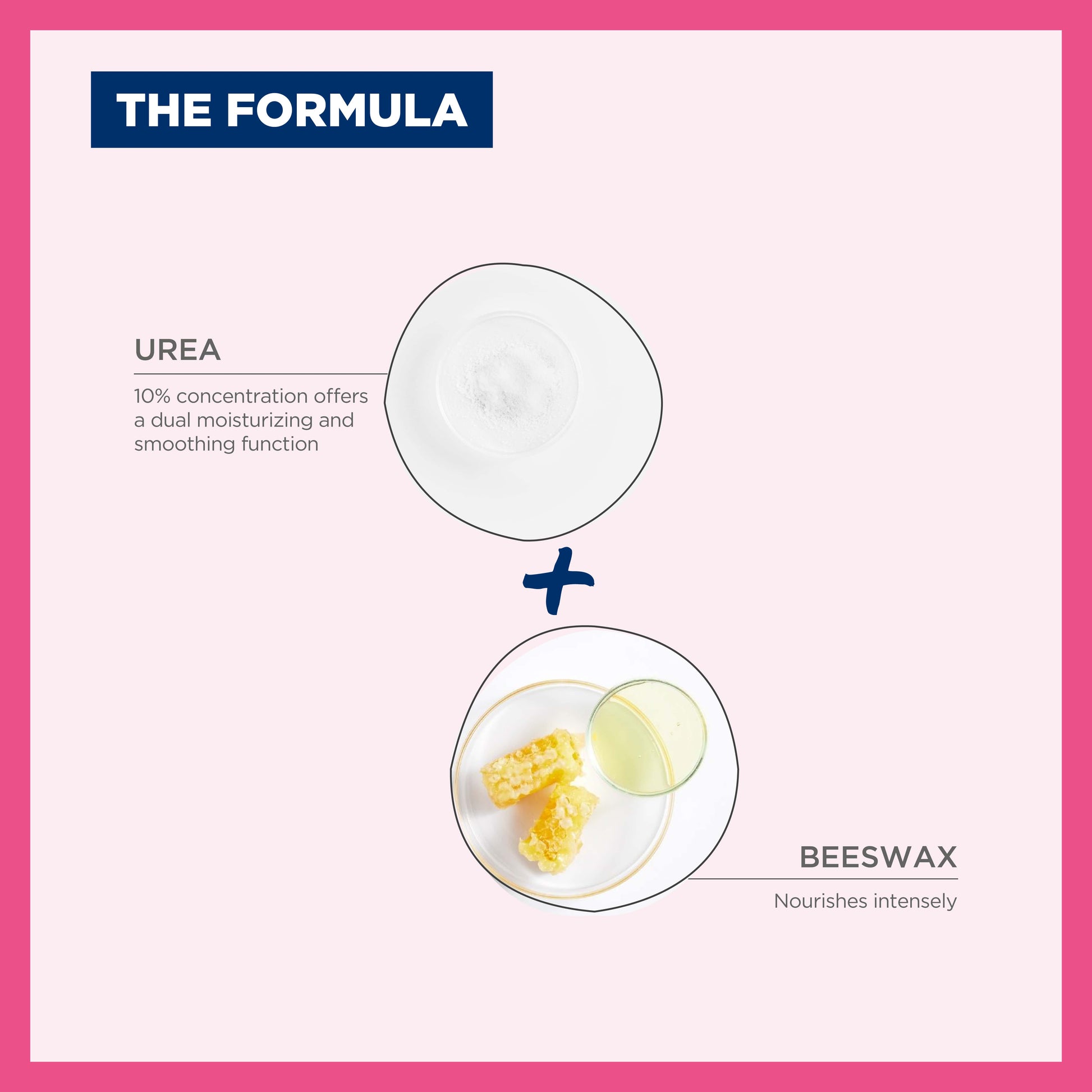 Aqua (Water), Paraffinum Liquidum (Mineral Oil) , Urea , Cera Alba (Beeswax) , Cetearyl Ethylhexanoate , Isopropyl Isostearate , Palmitic Acid , Stearic Acid ,Isopropyl Myristate , Phenoxyethanol , Glyceryl Stearate , Peg-100 Stearate , Carbomer , Chlorphenesin , Sodium Hydroxide , Parfum (Fragrance)