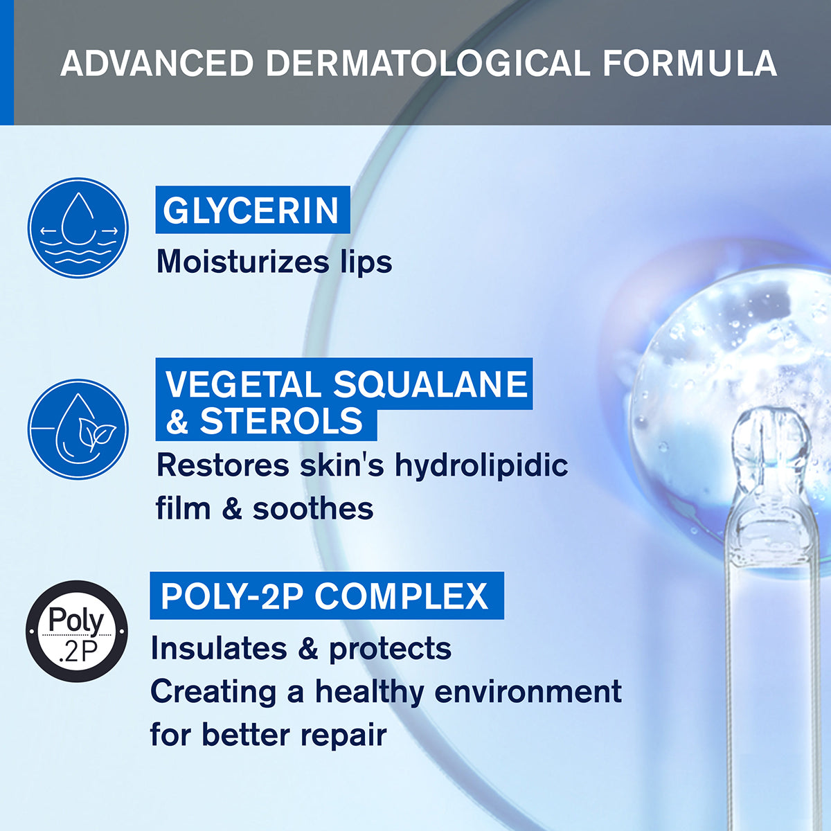 The first barrier lip balm formulated with Poly-2p, an innovative patented complex, which offers a triple action. A high tolerance and long-lasting formula that is suitable for both professional and personal use.