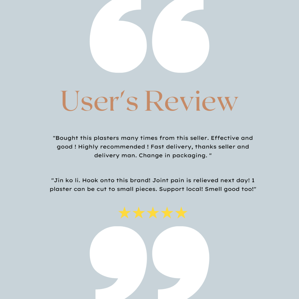 *Please take note that all plasters are NOT suitable for pregnant or nursing women and children under 12 years of age.