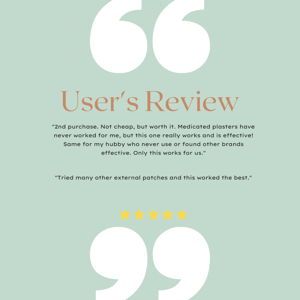 *Please take note that all plasters are NOT suitable for pregnant or nursing women and children under 12 years of age.